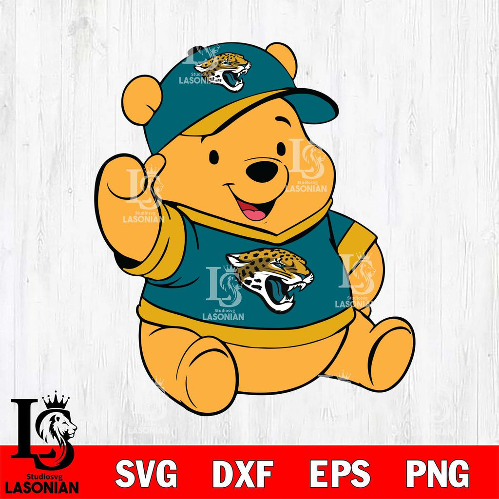 Plus, you can print these designs on a wide range of surfaces such as mugs, t-shirts, tumblers, flags, and more. Unleash your creativity and personalize your world with Jacksonville Jaguars Pooh Bear
