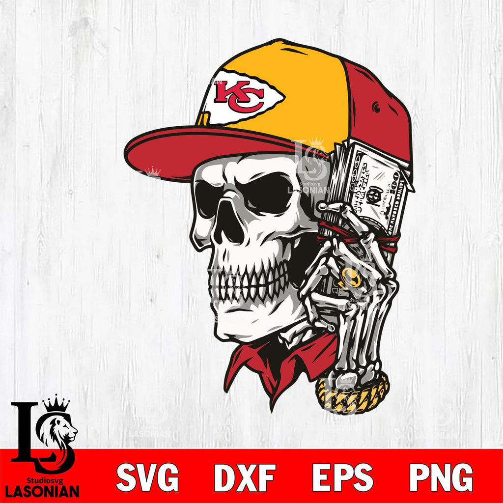 Plus, you can print these designs on a wide range of surfaces such as mugs, t-shirts, tumblers, flags, and more. Unleash your creativity and personalize your world with Kansas City Chiefs Badass Man Skull SVG