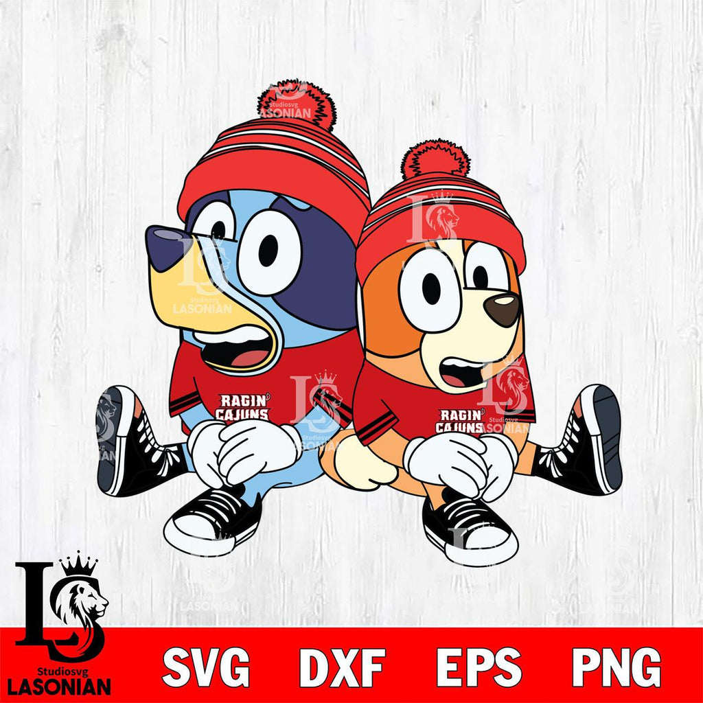 Louisiana Ragin' Cajuns Bluey & Bingo Christmas Svg Eps Dxf Png File, Digital Download, Instant Download