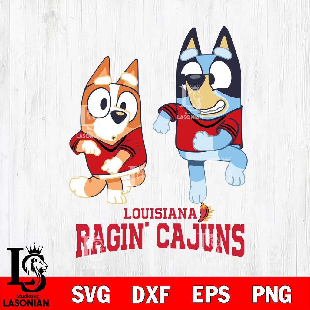 ►With the Louisiana Ragin' Cajuns Bluey with Chilli Dance, you can let your creativity run wild. This INSTANT DOWNLOAD package includes a ZIP folder containing the following: