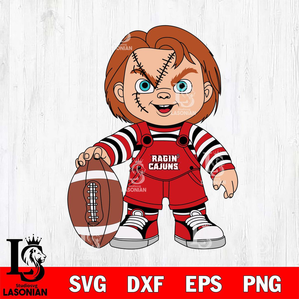 Plus, you can print these designs on a wide range of surfaces such as mugs, t-shirts, tumblers, flags, and more. Unleash your creativity and personalize your world with Louisiana Ragin' Cajuns Chucky Horror 7