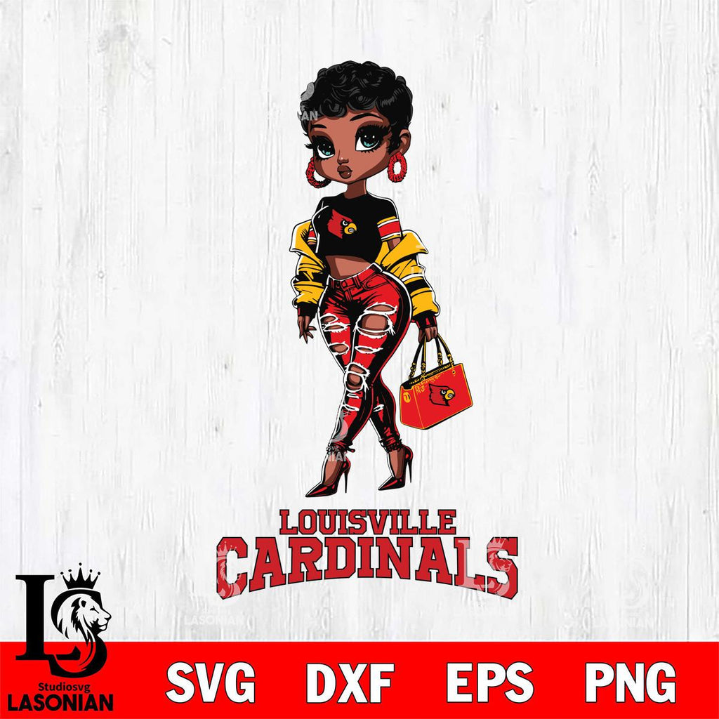 Louisville Cardinals Beautiful Black Fan Girl, Svg Eps Dxf Png File, Digital Download
