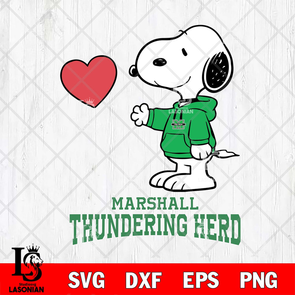 Buy now Marshall Thundering Herd Snoopy with Heart File cut , Criucut , Silhouette ,Digital Download, NCAA SVG DXF EPS PNG PDF File