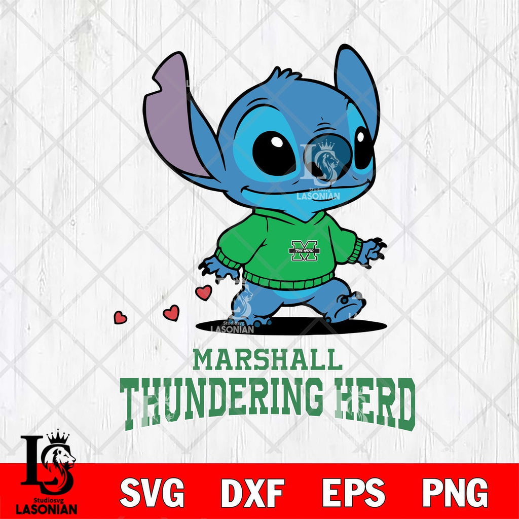 Buy now Marshall Thundering Herd Stitch walking cartoon File cut , Football Criucut , Digital Download, NCAA SVG DXF EPS PNG PDF File, Instant Download