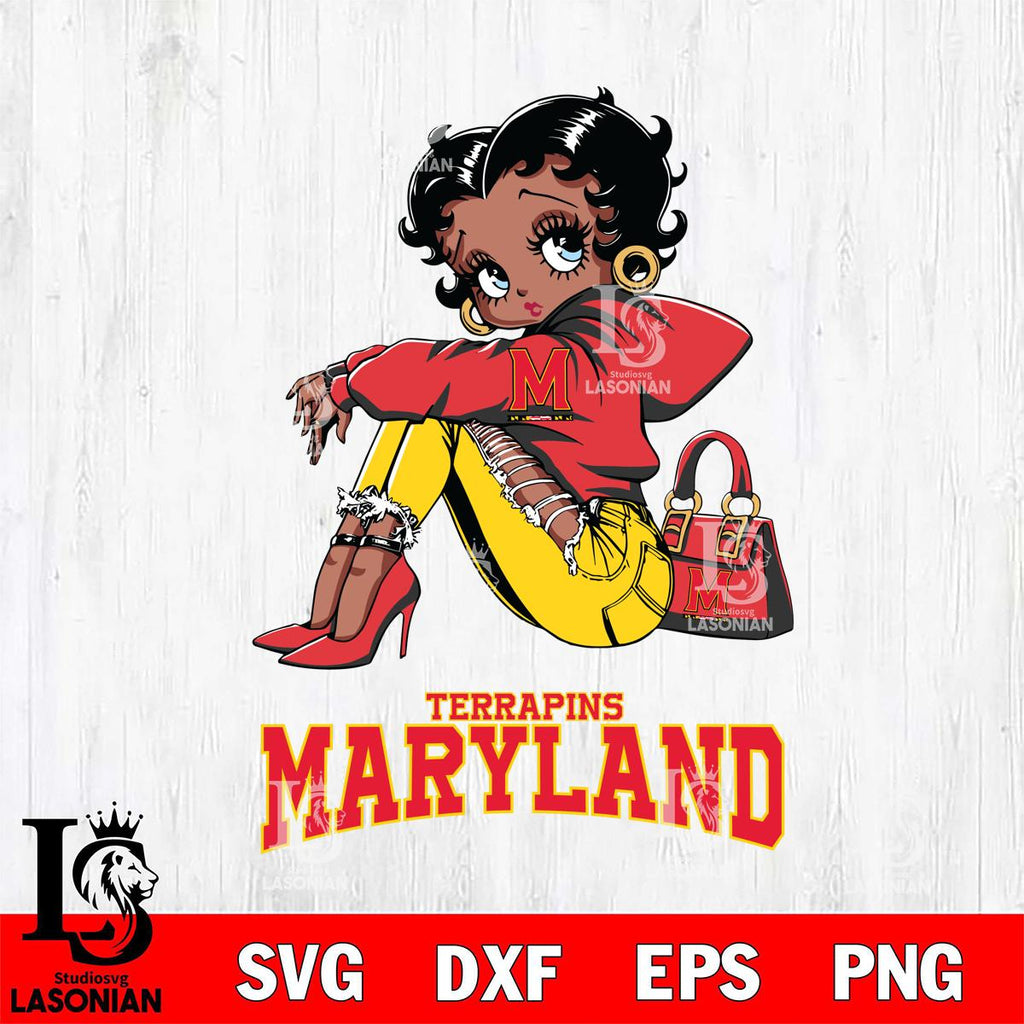 Plus, you can print these designs on a wide range of surfaces such as mugs, t-shirts, tumblers, flags, and more. Unleash your creativity and personalize your world with Maryland Terrapins Betty Boop Black Fan Girl