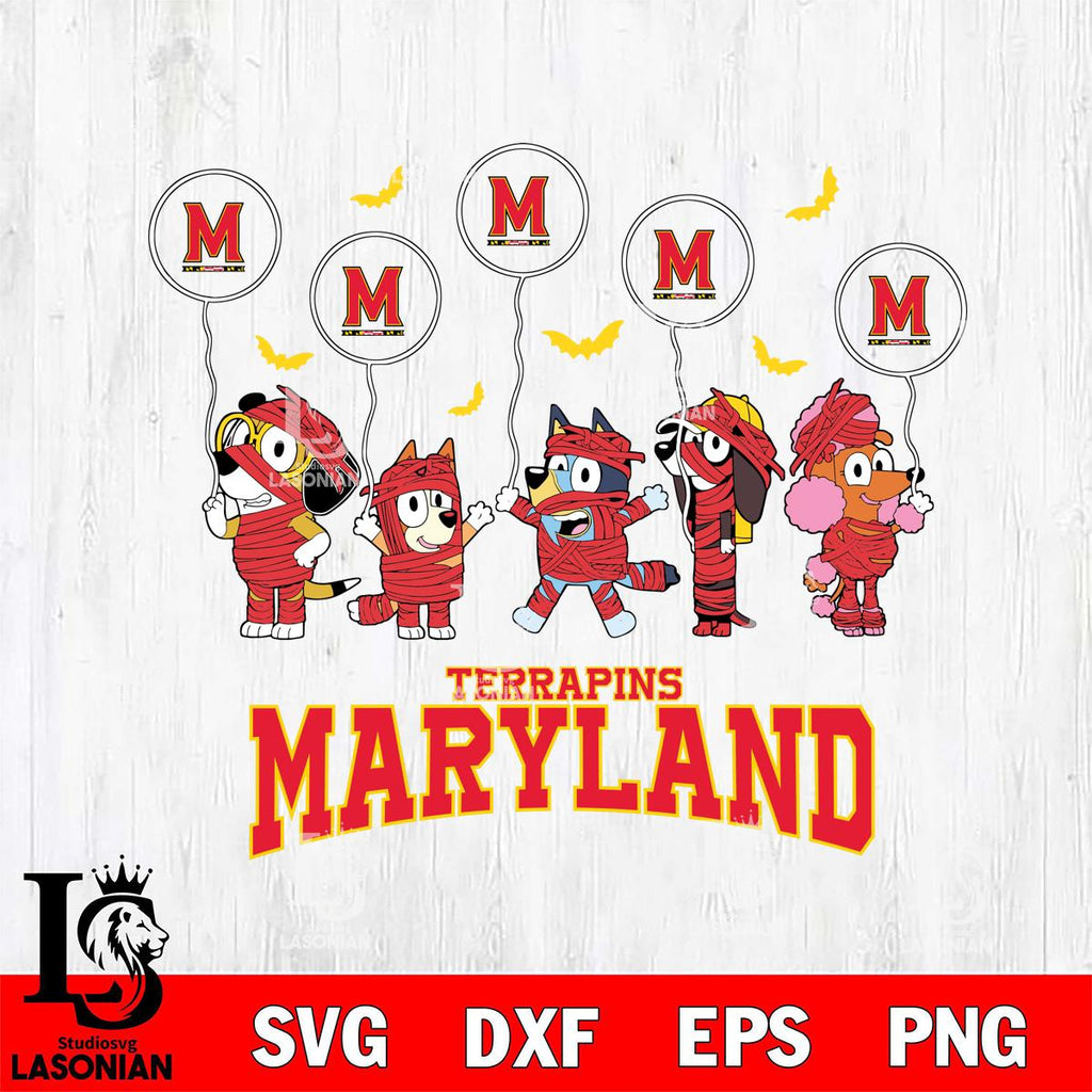 Plus, you can print these designs on a wide range of surfaces such as mugs, t-shirts, tumblers, flags, and more. Unleash your creativity and personalize your world with Maryland Terrapins Bluey Halloween Spooky