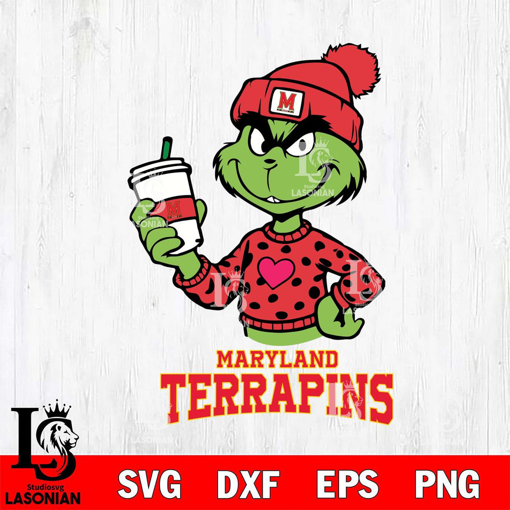 Plus, you can print these designs on a wide range of surfaces such as mugs, t-shirts, tumblers, flags, and more. Unleash your creativity and personalize your world with Maryland Terrapins Boujee Grinch Heart Christmas