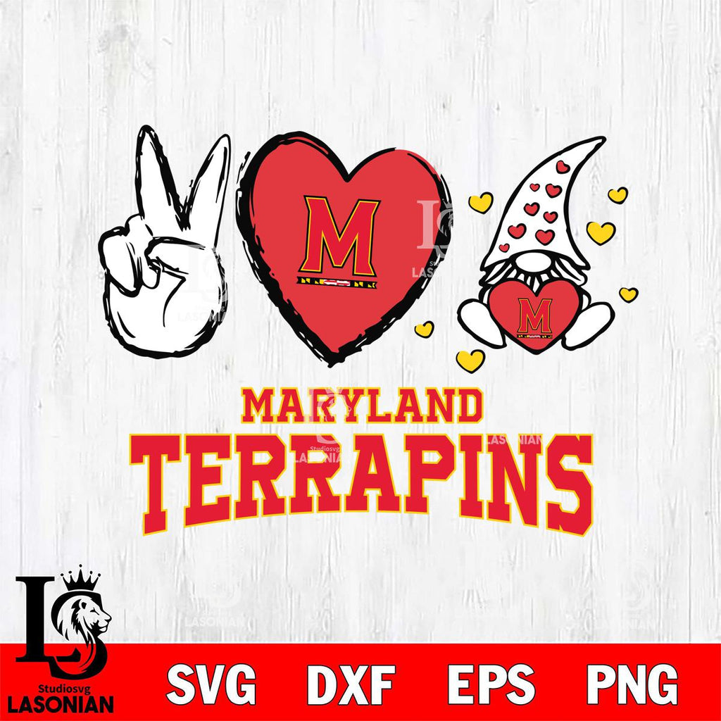 Maryland Terrapins Gnomes Peace & Love Svg Eps Dxf Png File, Digital Download, Instant Download