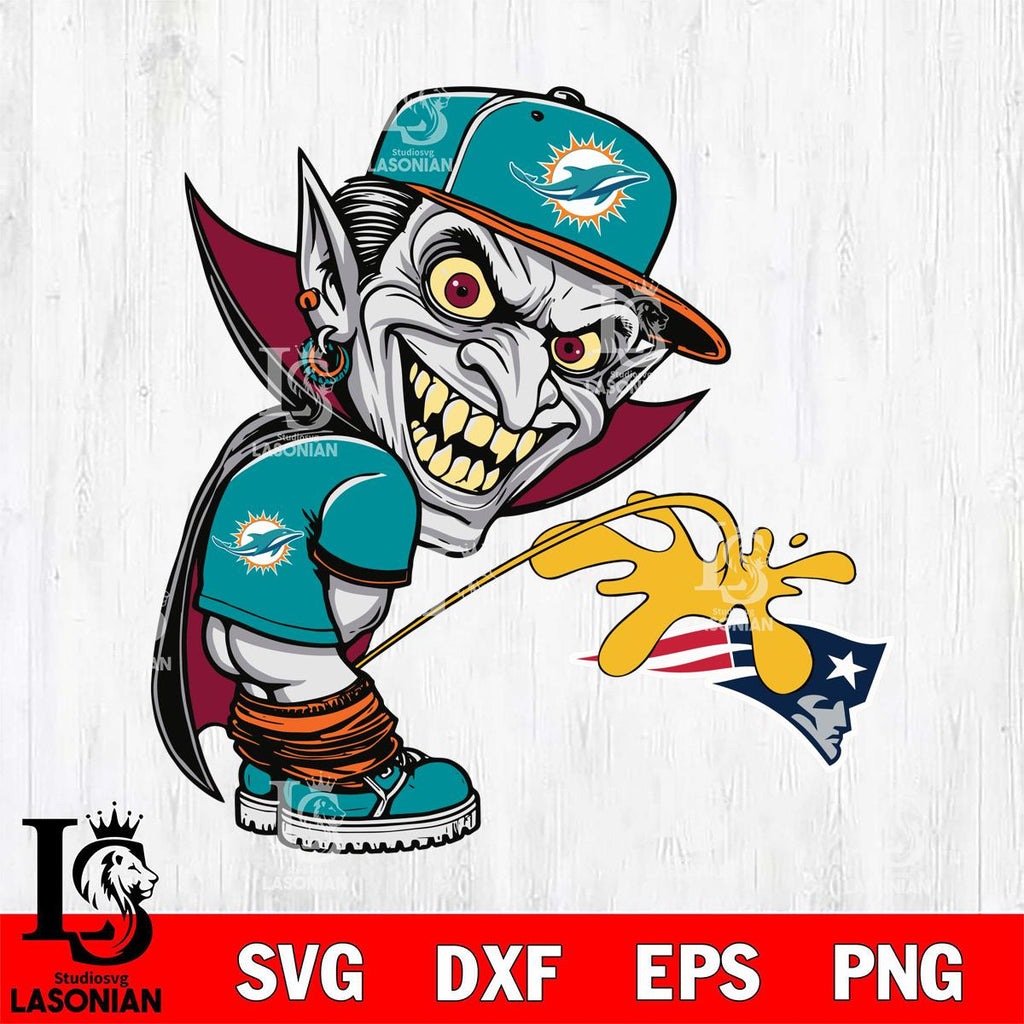 Plus, you can print these designs on a wide range of surfaces such as mugs, t-shirts, tumblers, flags, and more. Unleash your creativity and personalize your world with Miami Dolphins Dracula Piss On New England Patriots