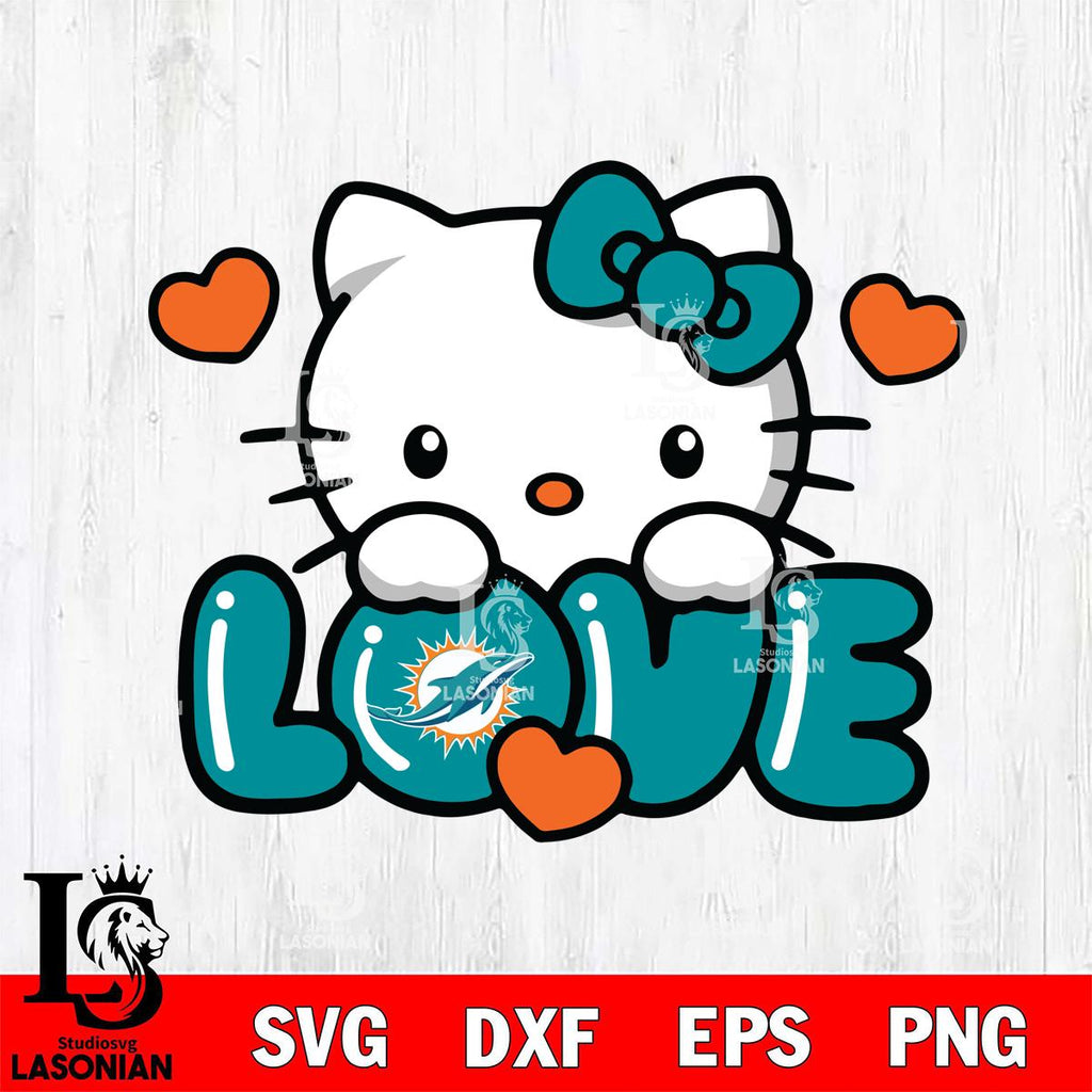 Plus, you can print these designs on a wide range of surfaces such as mugs, t-shirts, tumblers, flags, and more. Unleash your creativity and personalize your world with Miami Dolphins Hello Kitty Love