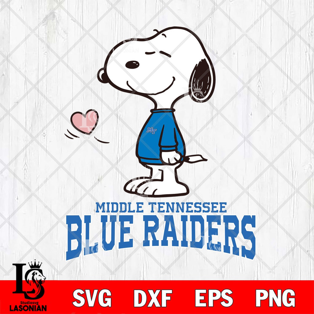Buy now Middle Tennessee Blue Raiders Love Snoopy Valentine File cut , Criucut , Silhouette ,Digital Download, NCAA SVG DXF EPS PNG PDF File