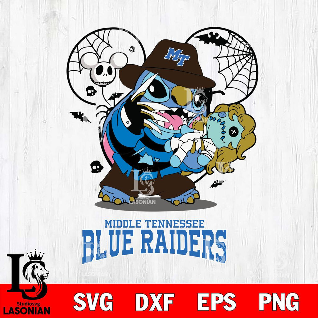 Middle Tennessee Blue Raiders Stitch Freddy Krueger Halloween Svg Eps Dxf Png File, Digital Download, Instant Download