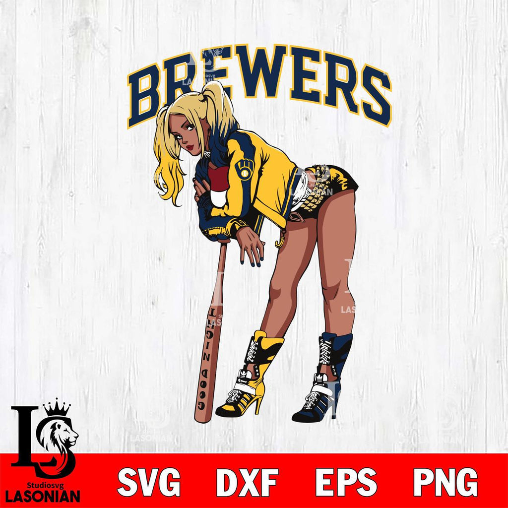 Milwaukee Brewers Black Fan Girl Harley Quinn MLB Svg Eps Dxf Png File, Digital Download, Instant Download