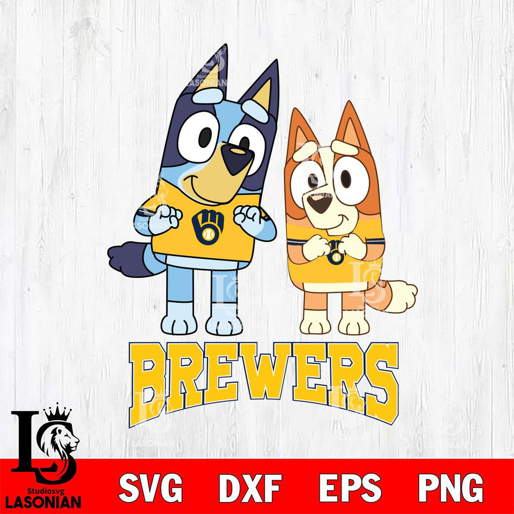 Plus, you can print these designs on a wide range of surfaces such as mugs, t-shirts, tumblers, flags, and more. Unleash your creativity and personalize your world with Milwaukee Brewers Bluey & Bingo 6