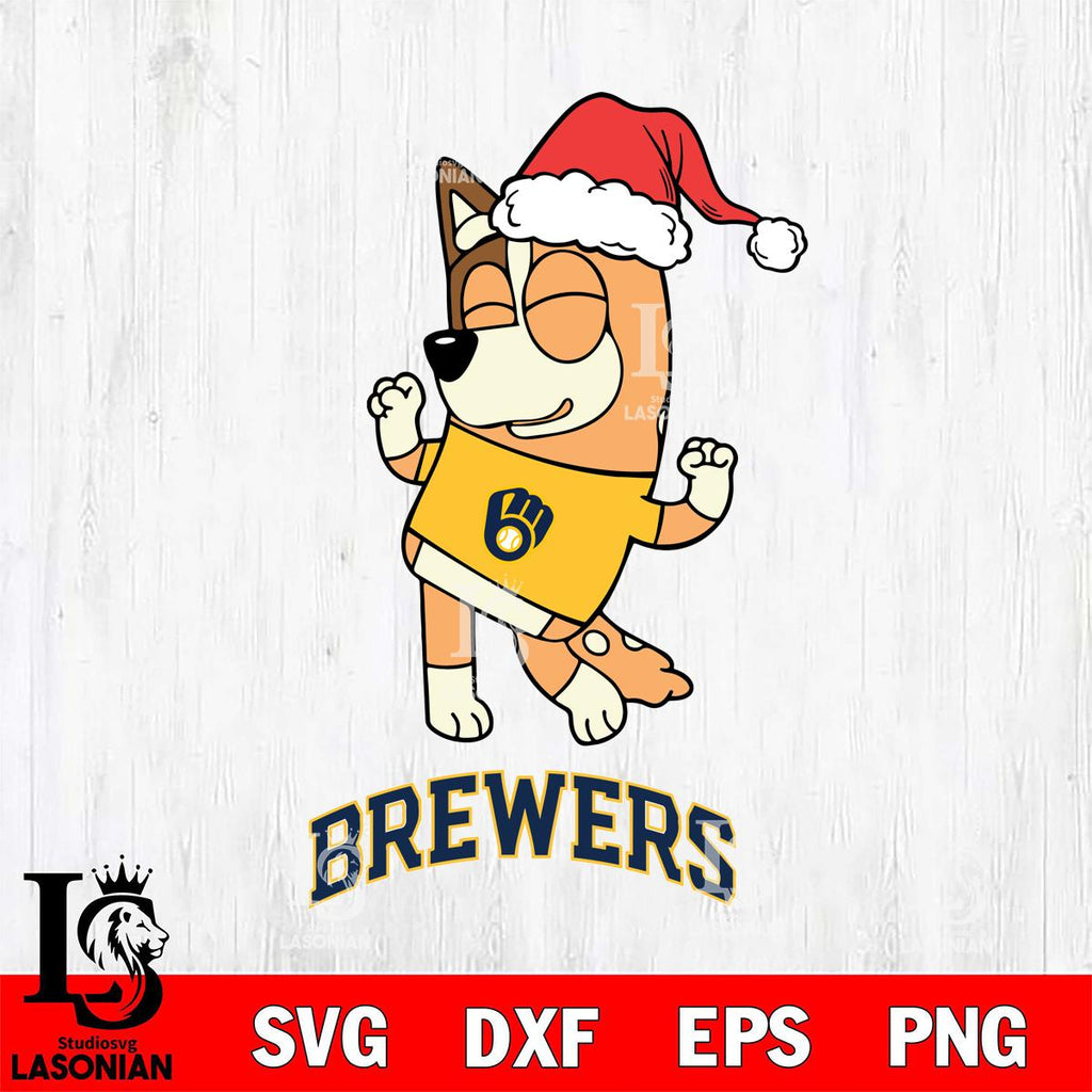 Plus, you can print these designs on a wide range of surfaces such as mugs, t-shirts, tumblers, flags, and more. Unleash your creativity and personalize your world with Milwaukee Brewers Bluey Chilli Happy Christmas