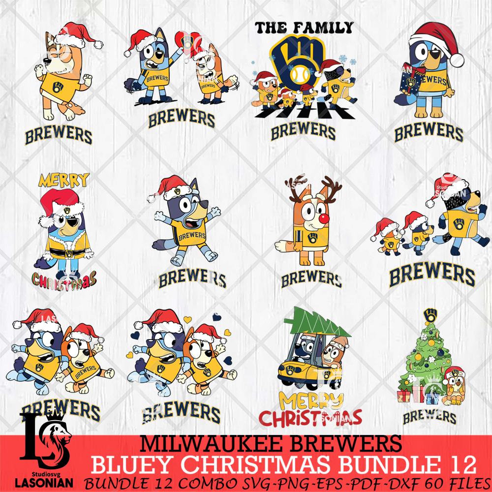 ►With the Milwaukee Brewers Bluey Happy Christmas Bundle 12, you can let your creativity run wild. This INSTANT DOWNLOAD package includes a ZIP folder containing the following: