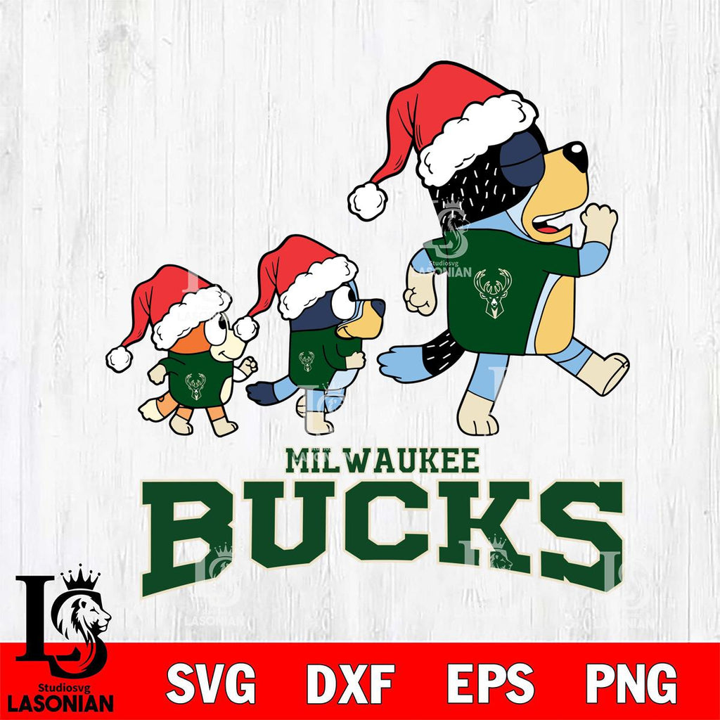 Milwaukee Bucks Bluey Family Christmas Svg Eps Dxf Png File, Digital Download