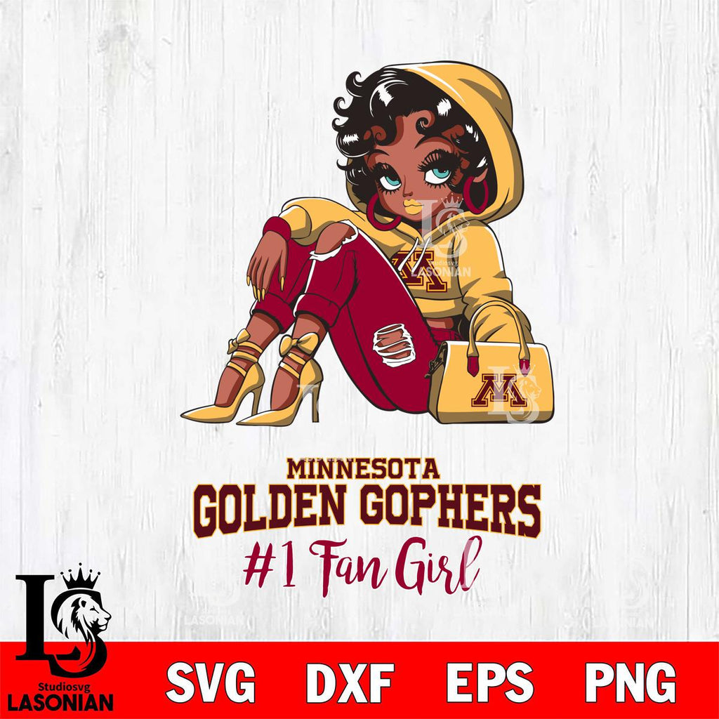 Minnesota Golden Gophers #1 beauty Black Fan Girl, Svg Eps Dxf Png File, Digital Download