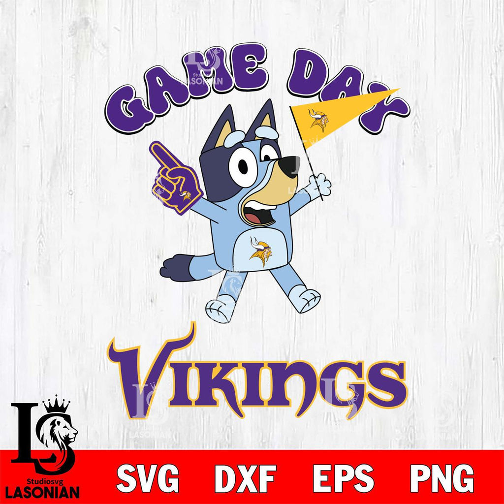 Plus, you can print these designs on a wide range of surfaces such as mugs, t-shirts, tumblers, flags, and more. Unleash your creativity and personalize your world with Minnesota Vikings Bluey Game Day