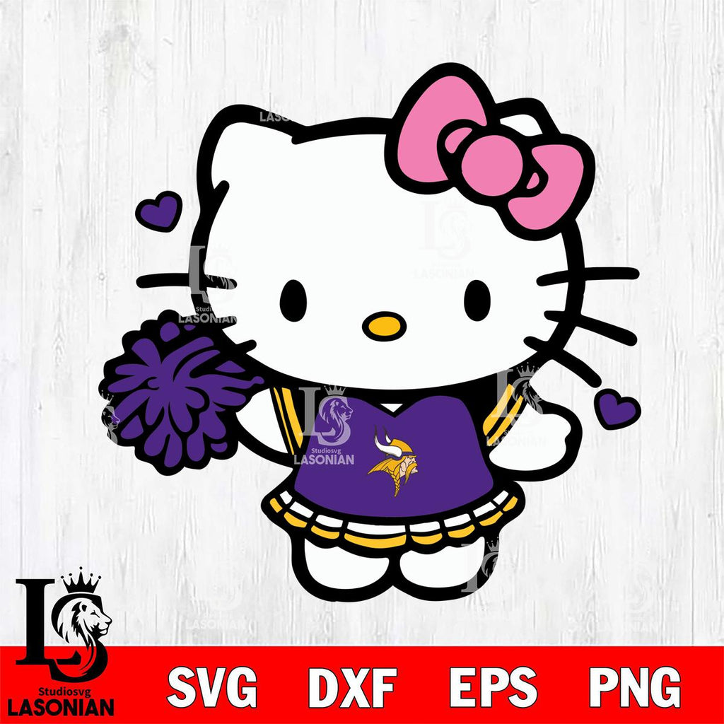 Plus, you can print these designs on a wide range of surfaces such as mugs, t-shirts, tumblers, flags, and more. Unleash your creativity and personalize your world with Minnesota Vikings Hello Kitty Cheerleader 6