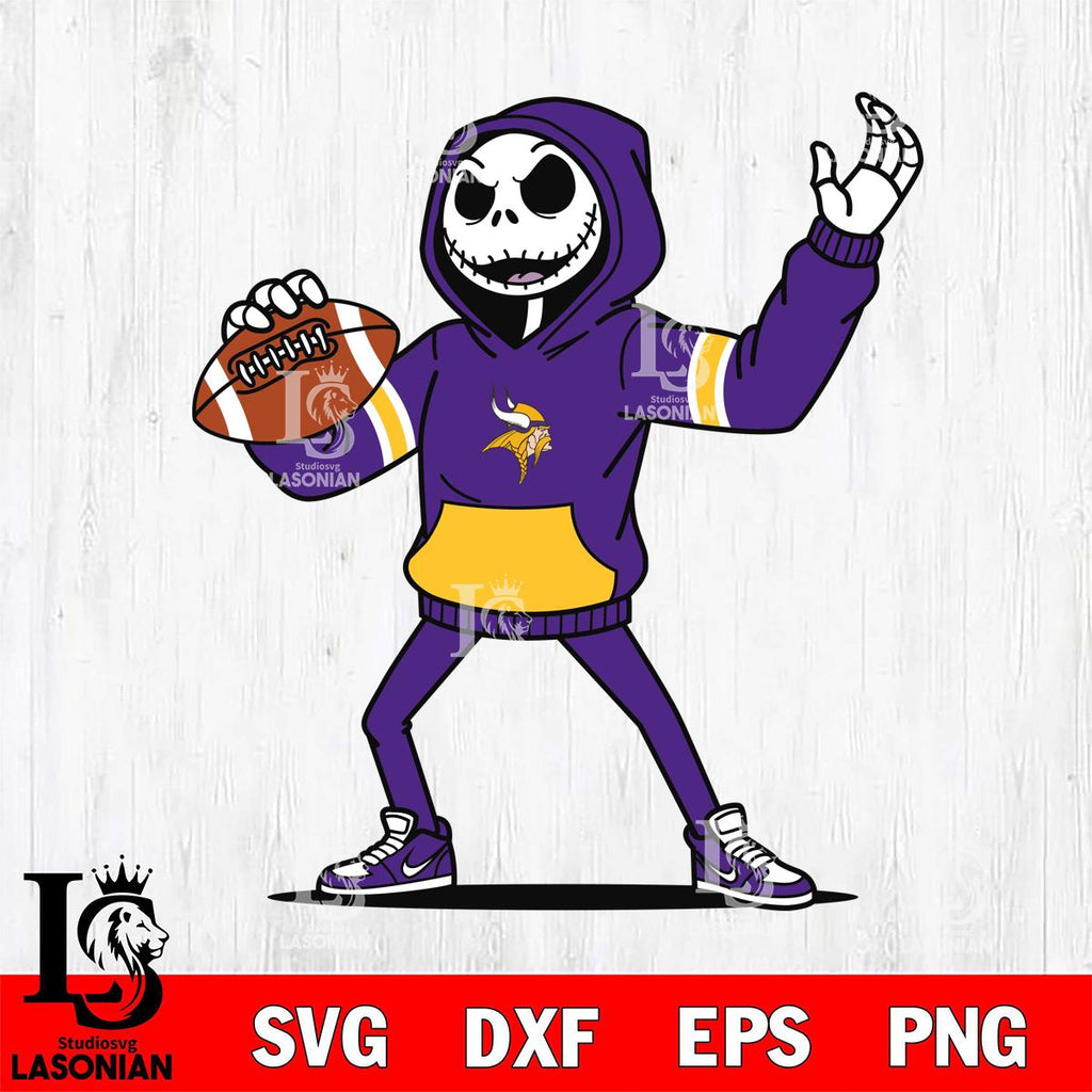 Minnesota Vikings Jack Skellington Football Christmas File Cut, NFL SVG DXF EPS PNG FILE, Digital Download , Criucut , Silhouette