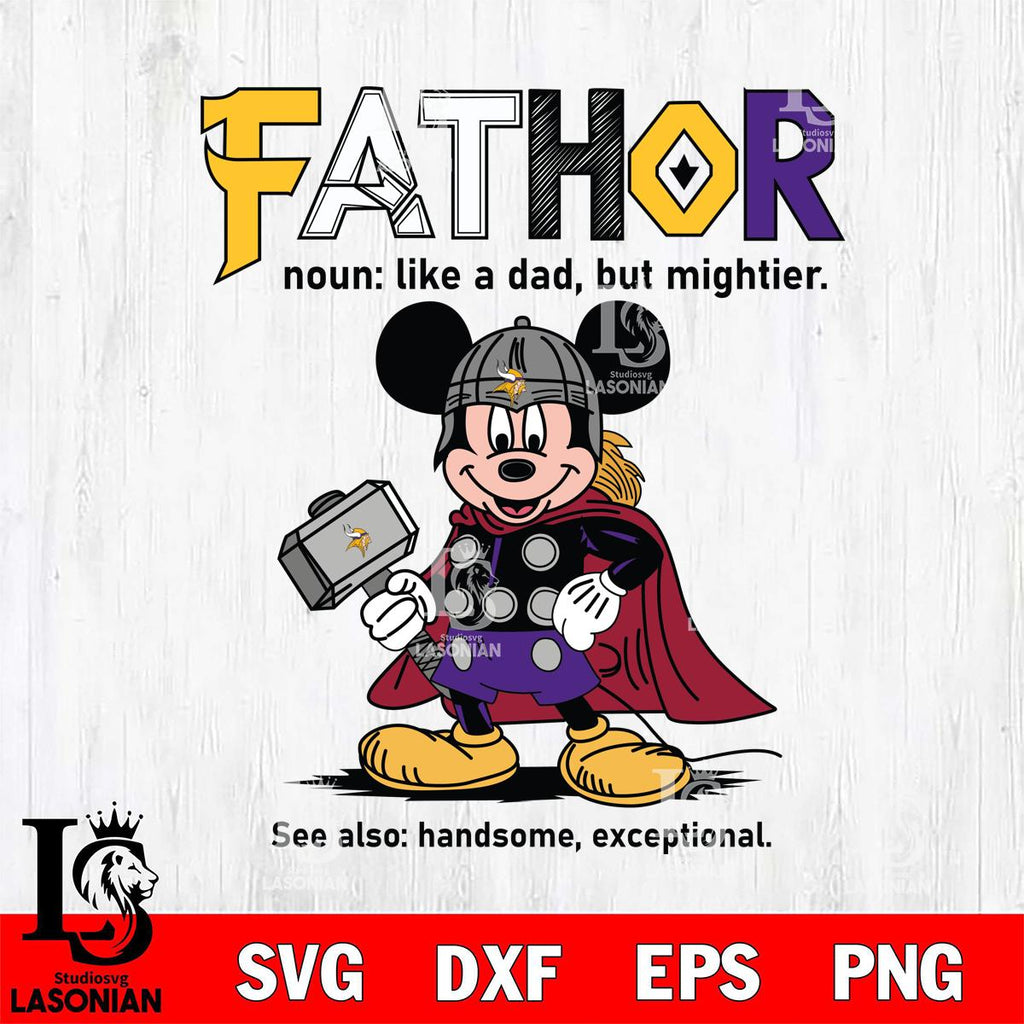 Plus, you can print these designs on a wide range of surfaces such as mugs, t-shirts, tumblers, flags, and more. Unleash your creativity and personalize your world with Minnesota Vikings Mickey Fathor Sport
