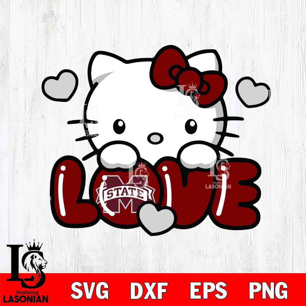 Plus, you can print these designs on a wide range of surfaces such as mugs, t-shirts, tumblers, flags, and more. Unleash your creativity and personalize your world with Mississippi State Bulldogs Hello Kitty Love
