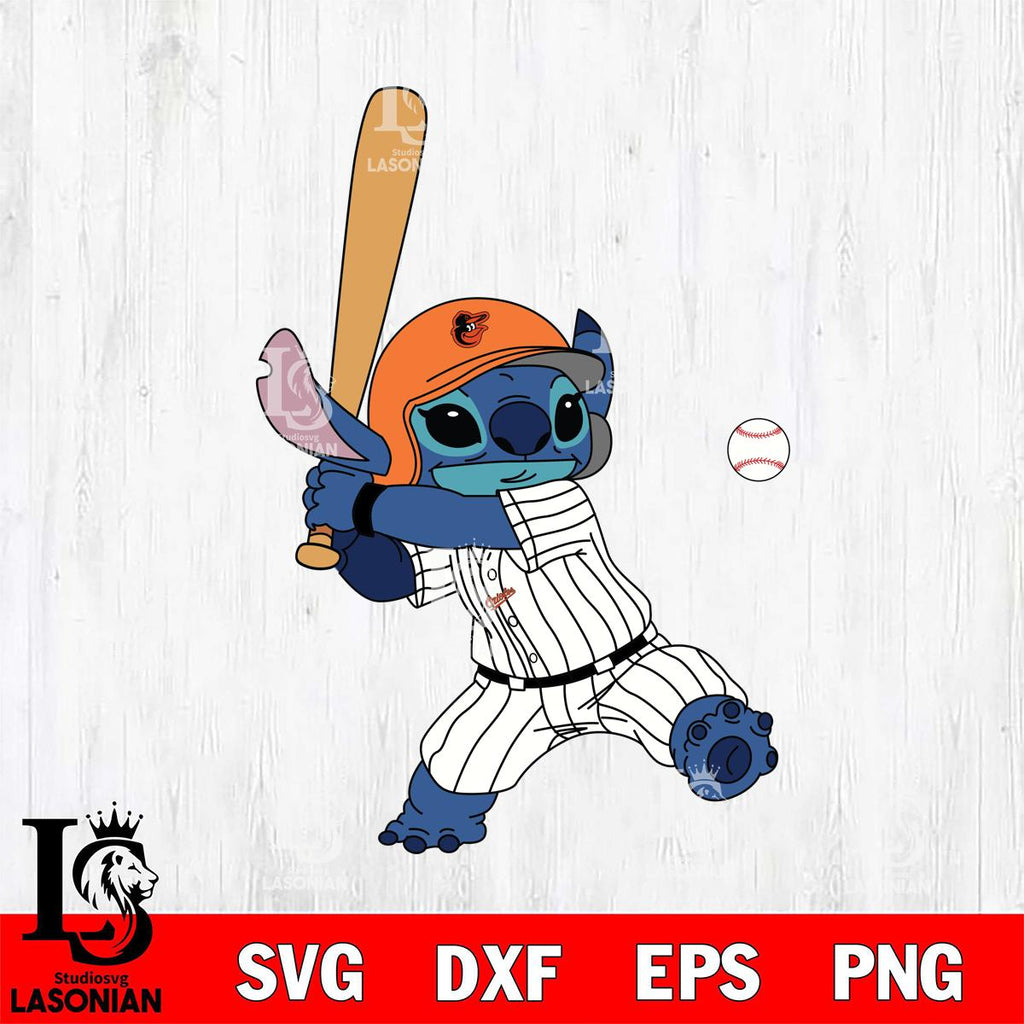 Plus, you can print these designs on a wide range of surfaces such as mugs, t-shirts, tumblers, flags, and more. Unleash your creativity and personalize your world with Baltimore Orioles Stitch hits ball