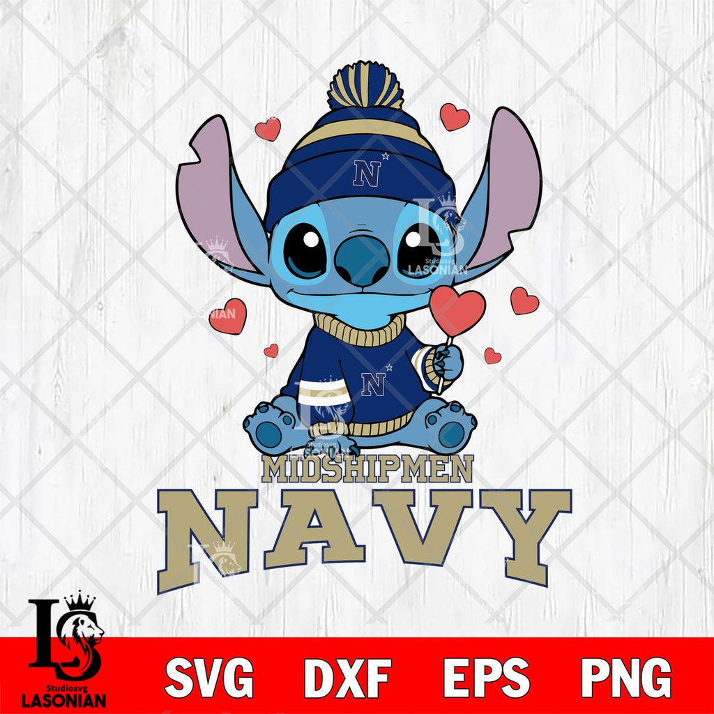Buy now Navy Midshipmen Stitch Valentine Holding Heart File cut , Football Criucut , Digital Download, NCAA SVG DXF EPS PNG PDF File, Instant Download