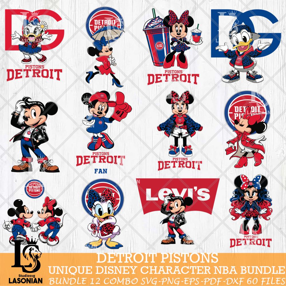 Plus, you can print these designs on a wide range of surfaces such as mugs, t-shirts, tumblers, flags, and more. Unleash your creativity and personalize your world with Detroit Pistons Disney character NBA Bundle 12
