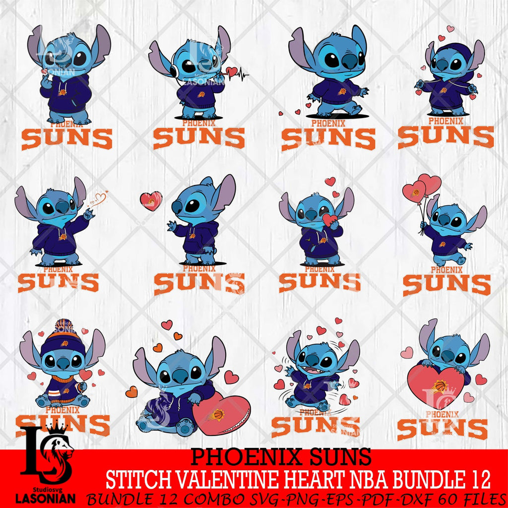 Phoenix Suns Stitch Valentine Heart NBA Bundle File cut , Criucut , Digital Download, NBA SVG DXF EPS PNG PDF File is a digital download, no physical product will be shipped. Once you've downloaded the file, you can embark on a variety of personal projects.