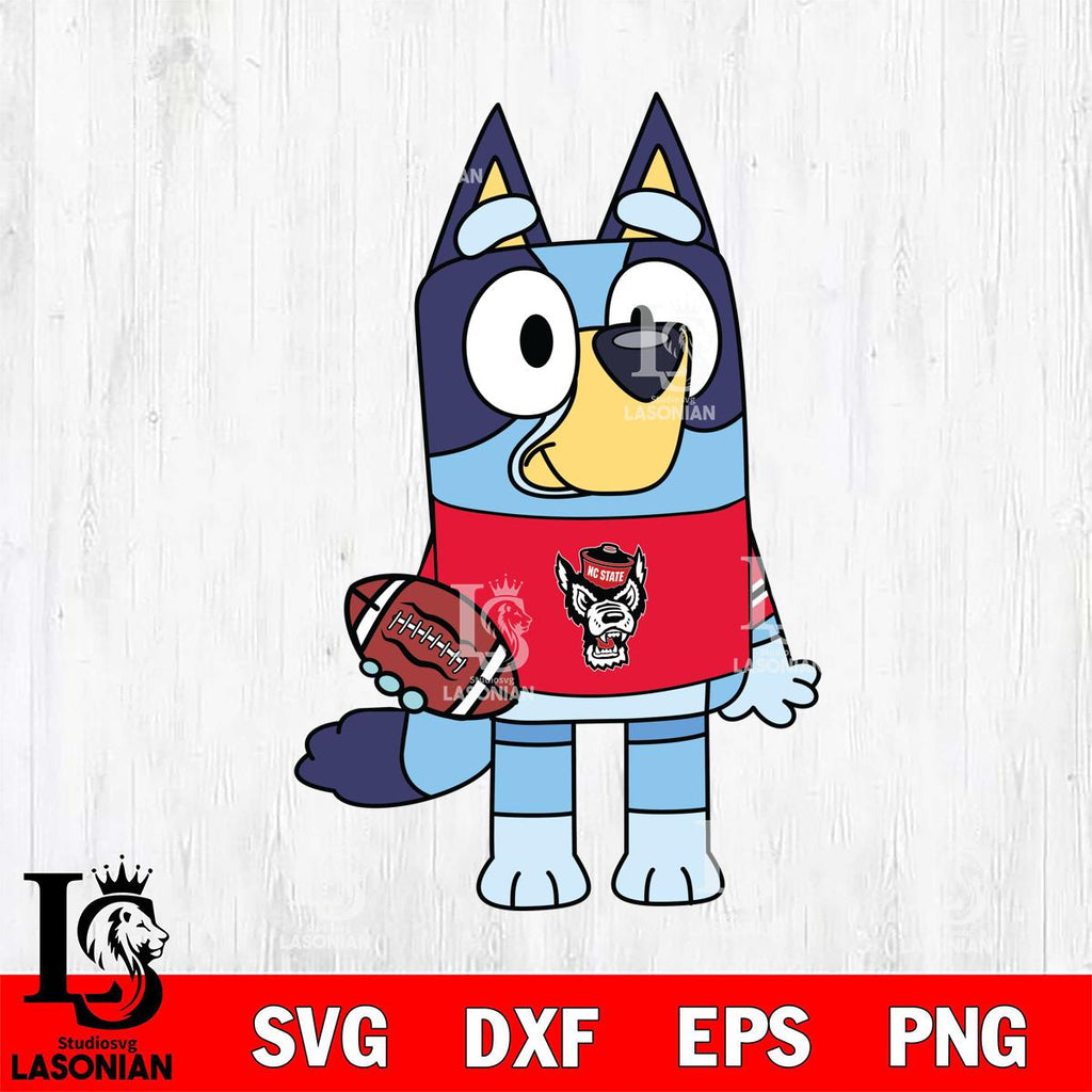 Plus, you can print these designs on a wide range of surfaces such as mugs, t-shirts, tumblers, flags, and more. Unleash your creativity and personalize your world with NC State Wolfpack Bluey 2