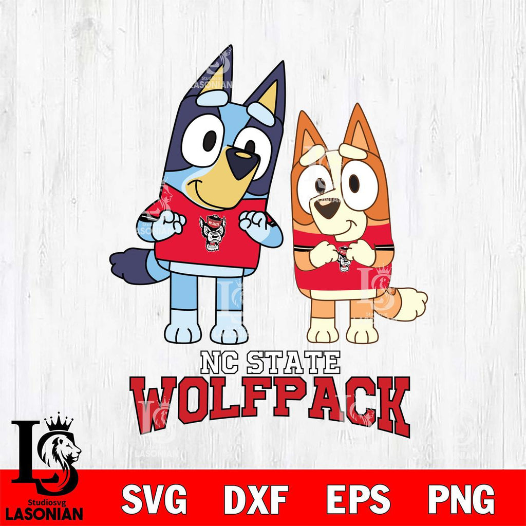 Plus, you can print these designs on a wide range of surfaces such as mugs, t-shirts, tumblers, flags, and more. Unleash your creativity and personalize your world with NC State Wolfpack Bluey & Bingo 6