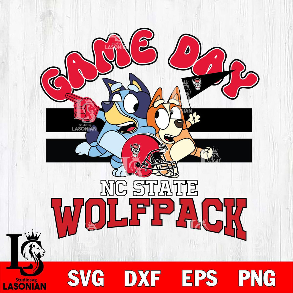 Plus, you can print these designs on a wide range of surfaces such as mugs, t-shirts, tumblers, flags, and more. Unleash your creativity and personalize your world with NC State Wolfpack Bluey & Bingo 9