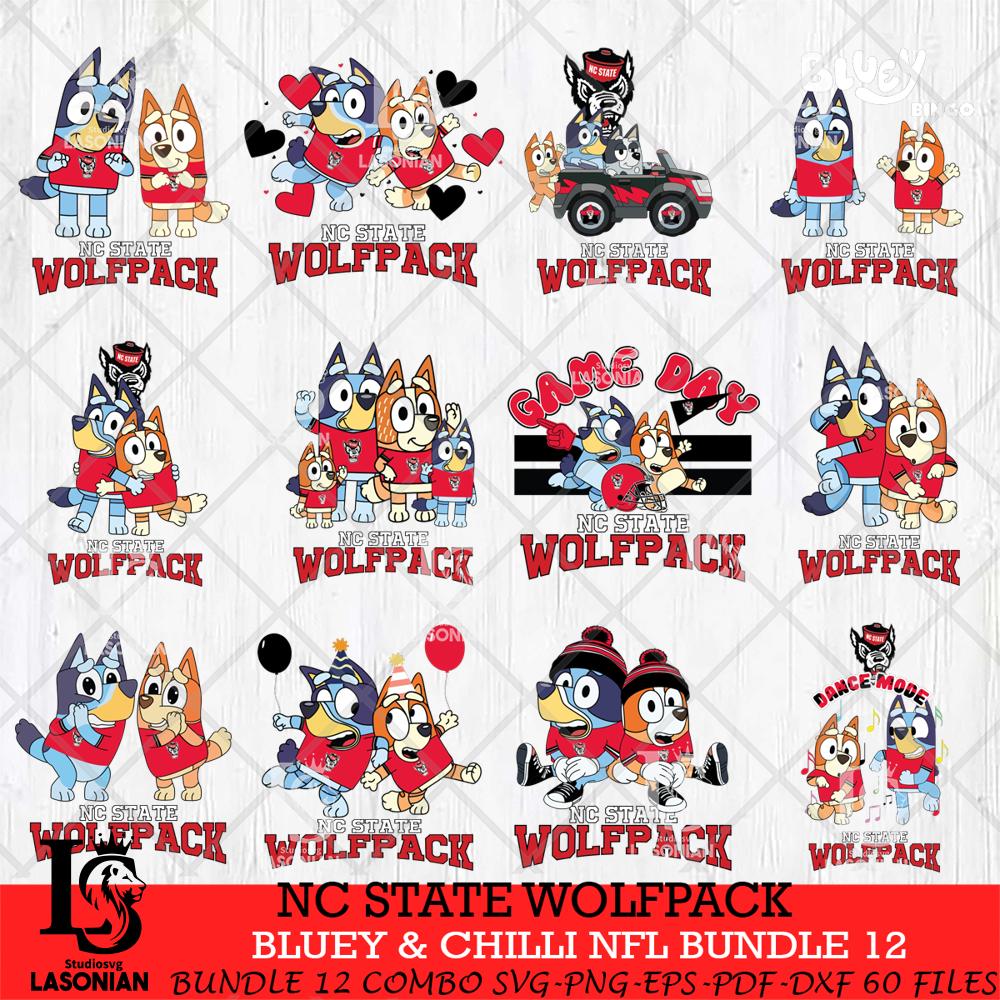 NC State Wolfpack Bluey & Bingo Bundle 12 SVG