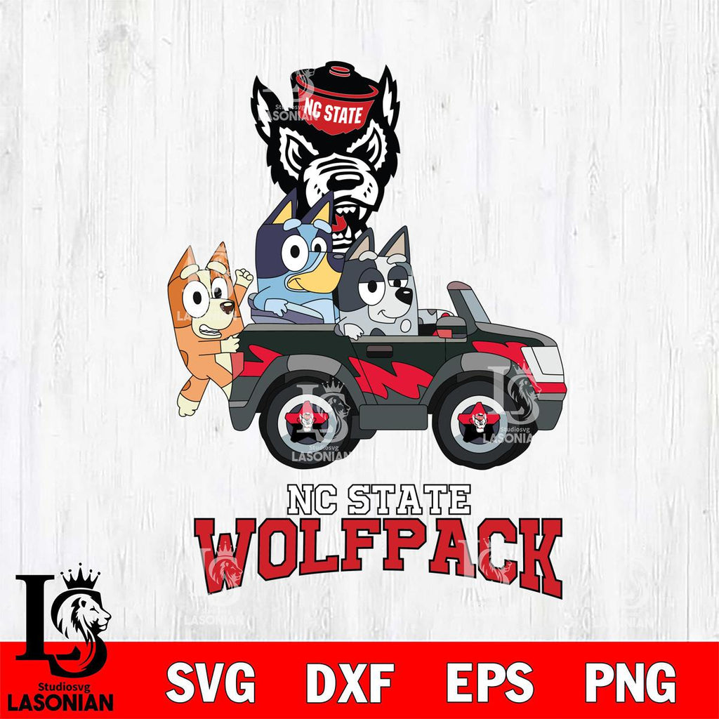 NC State Wolfpack Bluey friends car Svg Eps Dxf Png File, NCAA svg, Digital Download, Instant Download