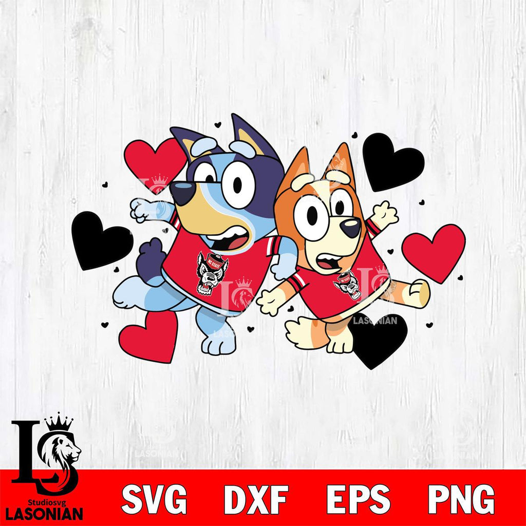 Plus, you can print these designs on a wide range of surfaces such as mugs, t-shirts, tumblers, flags, and more. Unleash your creativity and personalize your world with NC State Wolfpack Bluey heart