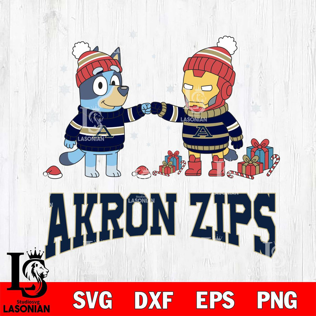 Akron Zips Bluey With Iron man Christmas File Cut, NCAA SVG DXF EPS PNG FILE, Digital Download,Instant Download, Silhouette