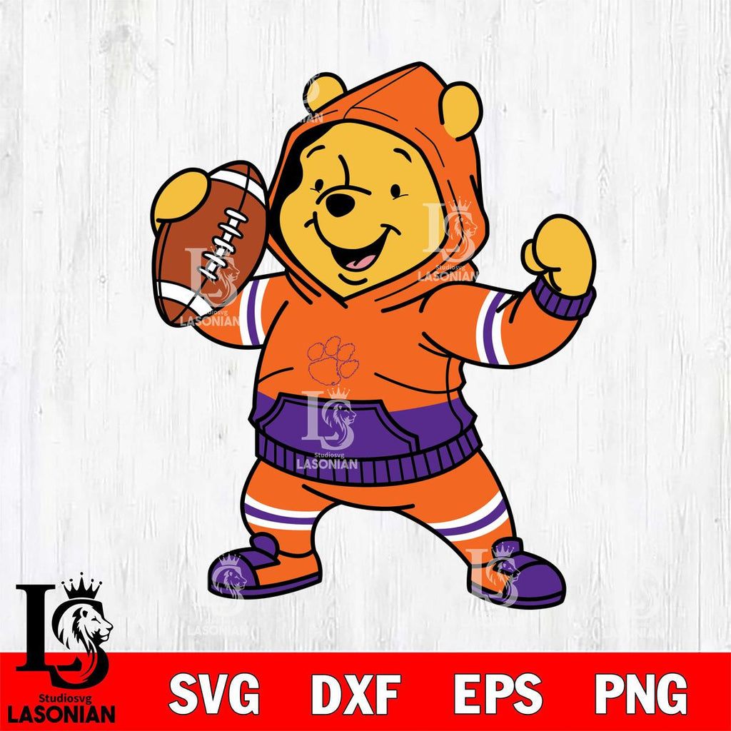 Clemson Tigers Winnie The Pooh Disney Football Christmas File Cut, NCAA SVG DXF EPS PNG FILE, Digital Download , Criucut , Silhouette