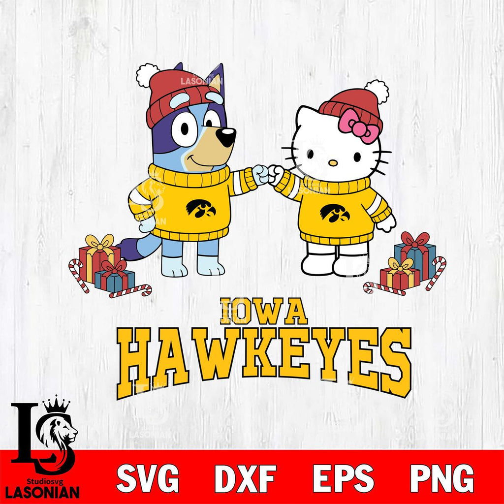 Iowa Hawkeyes Bluey With Hello kitty Christmas File Cut, NCAA SVG DXF EPS PNG FILE, Digital Download,Instant Download, Silhouette