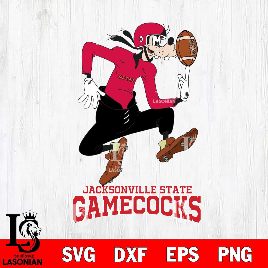 Plus, you can print these designs on a wide range of surfaces such as mugs, t-shirts, tumblers, flags, and more. Unleash your creativity and personalize your world with Jacksonville State Gamecocks Goofy Circus Football
