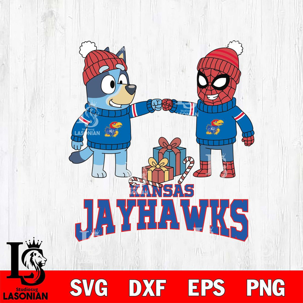 Buy now Kansas Jayhawks Bluey With Spider man Christmas