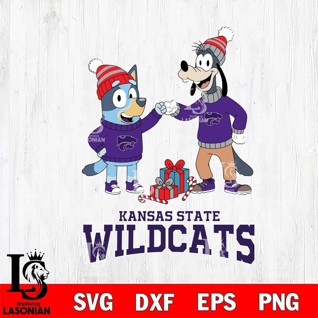 Kansas State Wildcats Bluey With Goofy Christmas File Cut, NCAA SVG DXF EPS PNG FILE, Digital Download,Instant Download, Silhouette