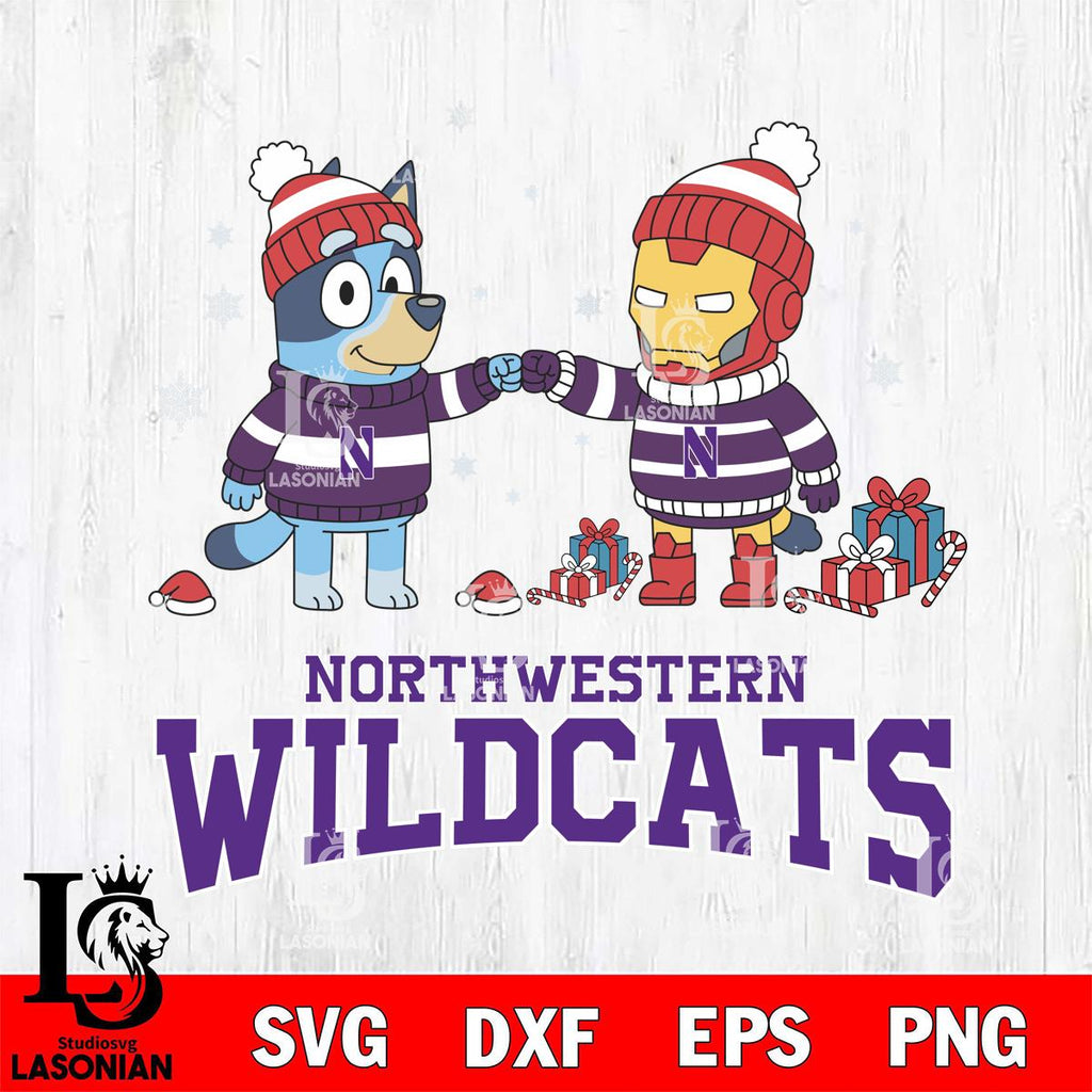 Northwestern Wildcats Bluey With Iron man Christmas File Cut, NCAA SVG DXF EPS PNG FILE, Digital Download,Instant Download, Silhouette