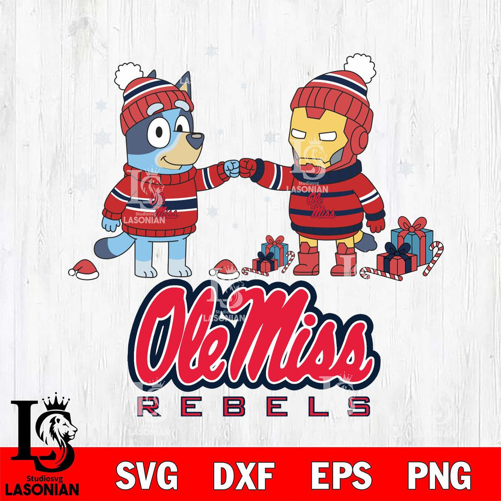 Ole Miss Rebels Bluey With Iron man Christmas File Cut, NCAA SVG DXF EPS PNG FILE, Digital Download,Instant Download, Silhouette