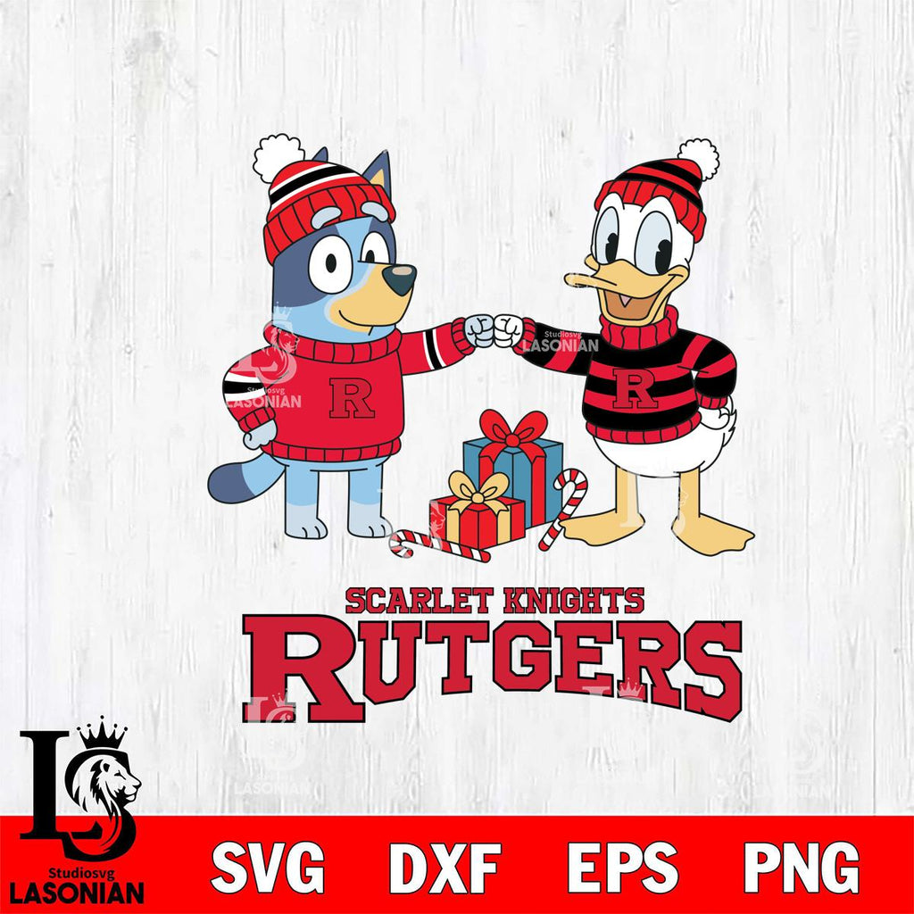 Rutgers Scarlet Knights Bluey With Donald Duck Christmas File Cut, NCAA SVG DXF EPS PNG FILE, Digital Download,Instant Download, Silhouette
