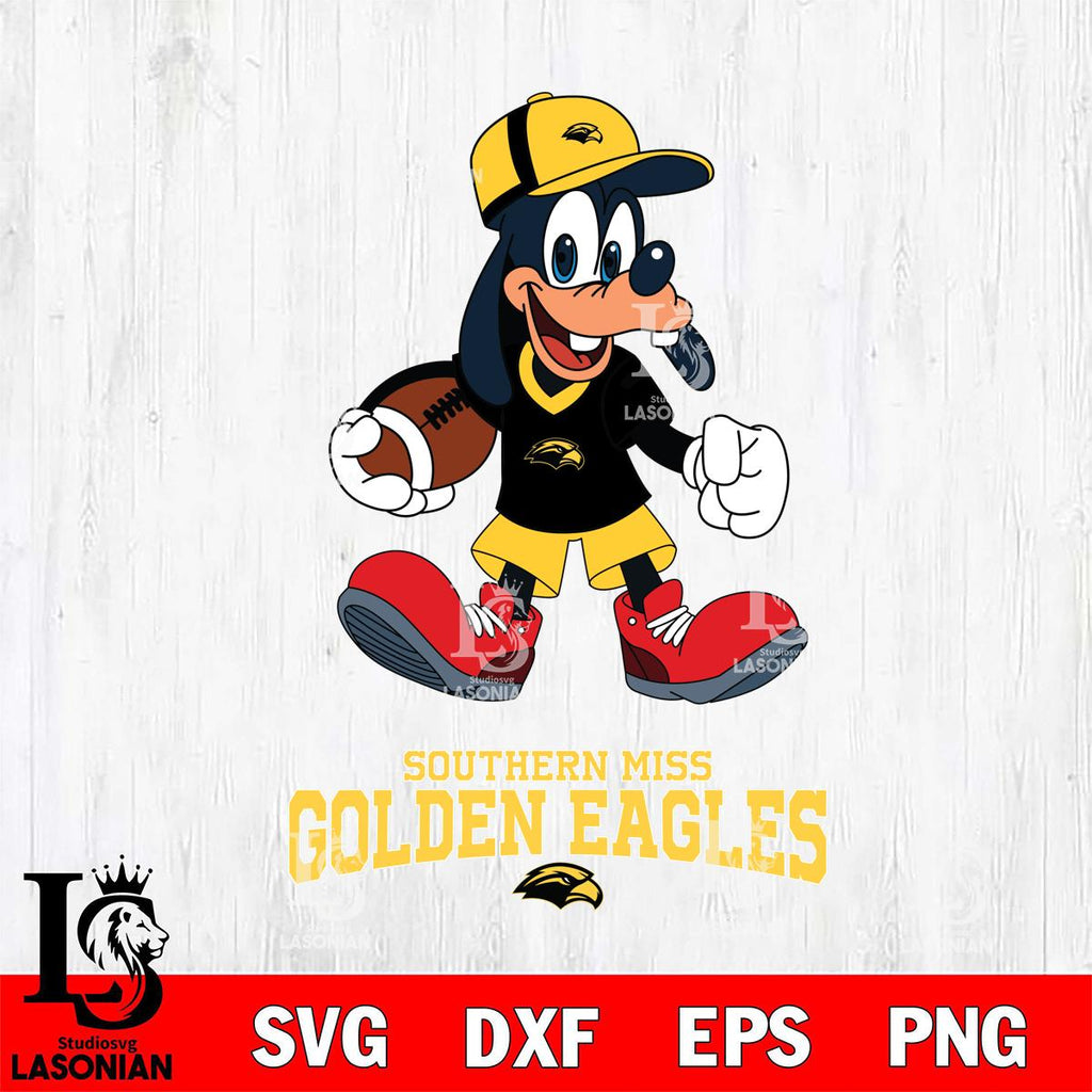 Plus, you can print these designs on a wide range of surfaces such as mugs, t-shirts, tumblers, flags, and more. Unleash your creativity and personalize your world with Southern Miss Golden Eagles Goofy Football Player