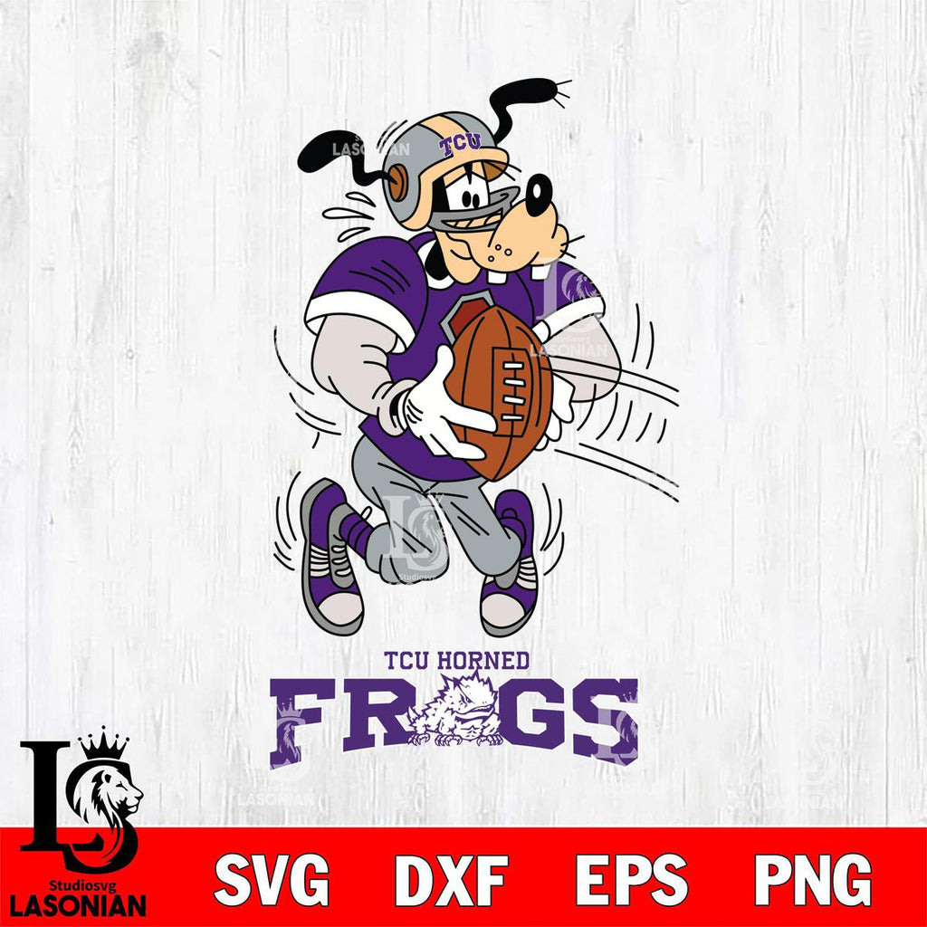 Plus, you can print these designs on a wide range of surfaces such as mugs, t-shirts, tumblers, flags, and more. Unleash your creativity and personalize your world with TCU Horned Frogs Goofy Sport Football