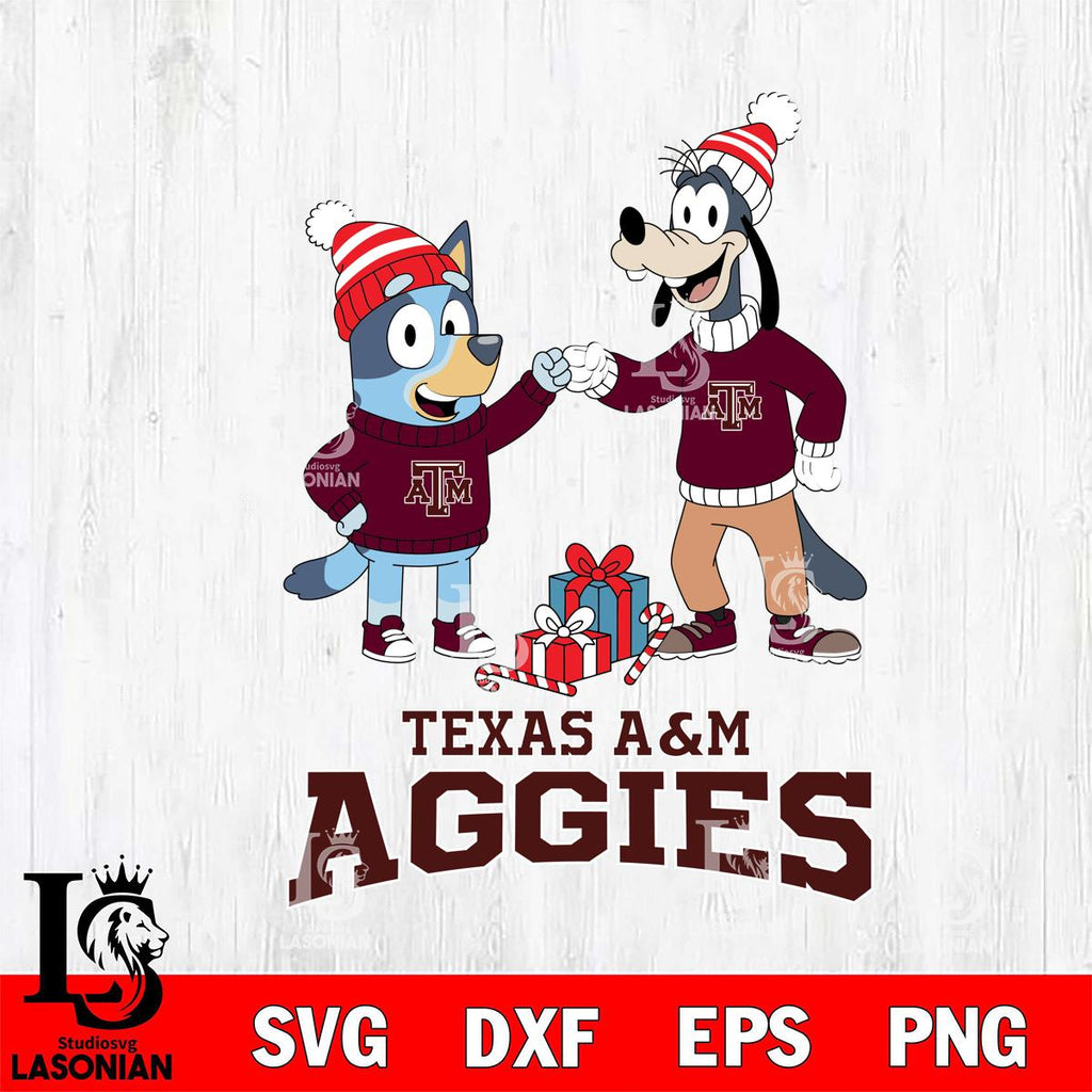 Texas A&M Aggies Bluey With Goofy Christmas is a digital download, no physical product will be shipped. Once you've downloaded the file, you can embark on a variety of personal projects.