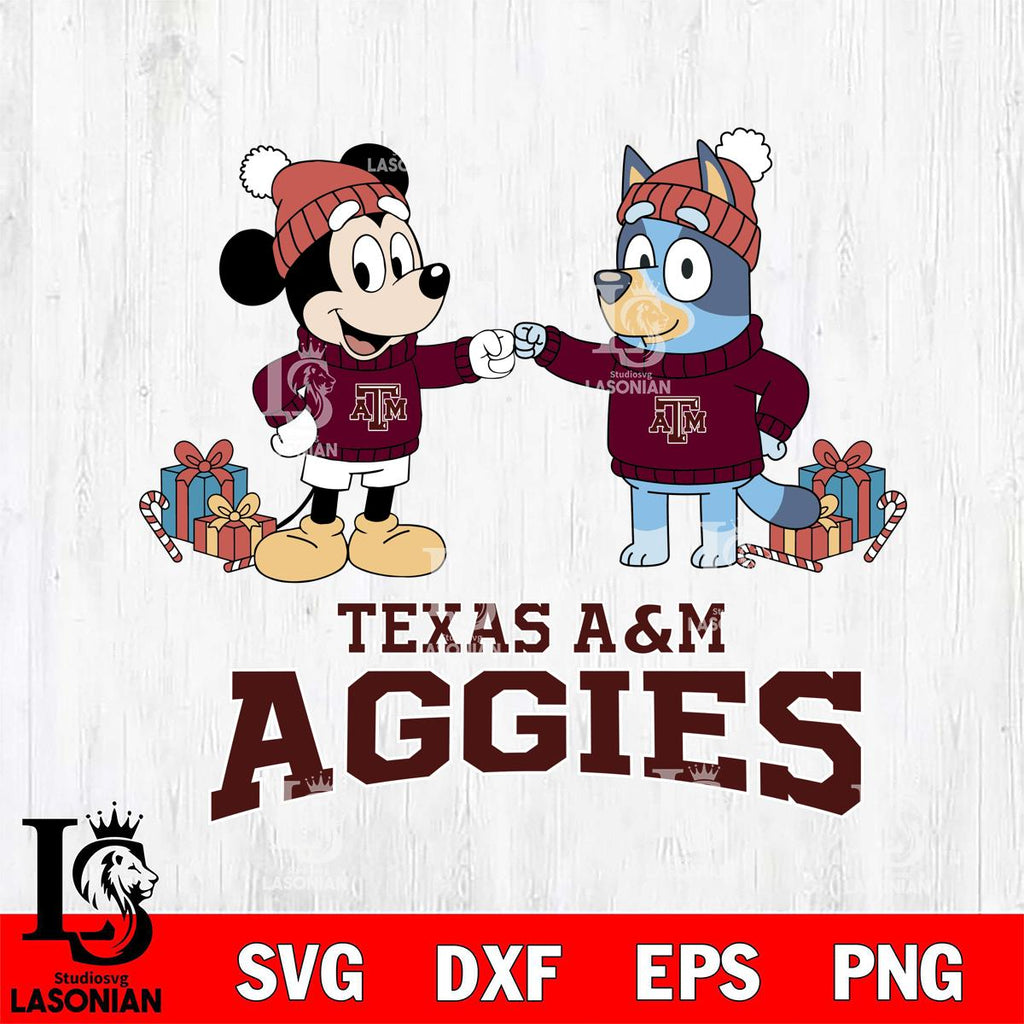 ►With the Texas A&M Aggies Bluey With Mickey Christmas, you can let your creativity run wild. This INSTANT DOWNLOAD package includes a ZIP folder containing the following: